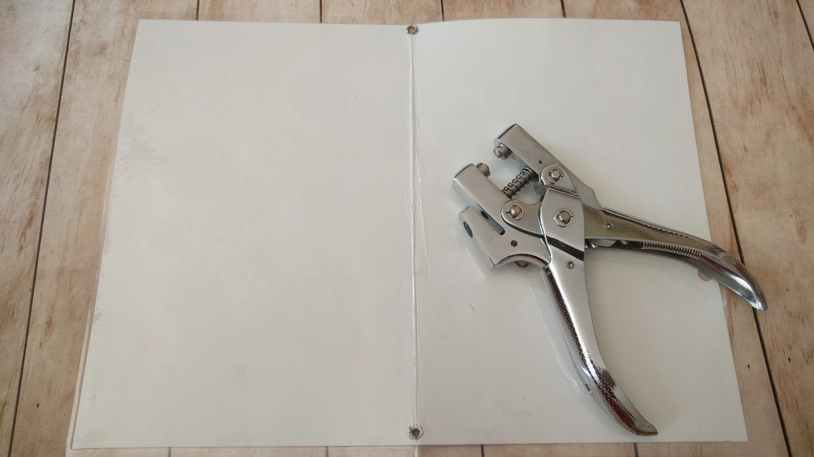בעזרת מנקב הניטים + הניטים מנקבים חורים ושמים בהם את הניטים, במרכז הדף המנויילן, בקצוות. אין לכם ניטים, לא נורא, נקבות ועשו חור, כיוון שדף מנויילן זה מחזיק יפה גם בלי ניט.