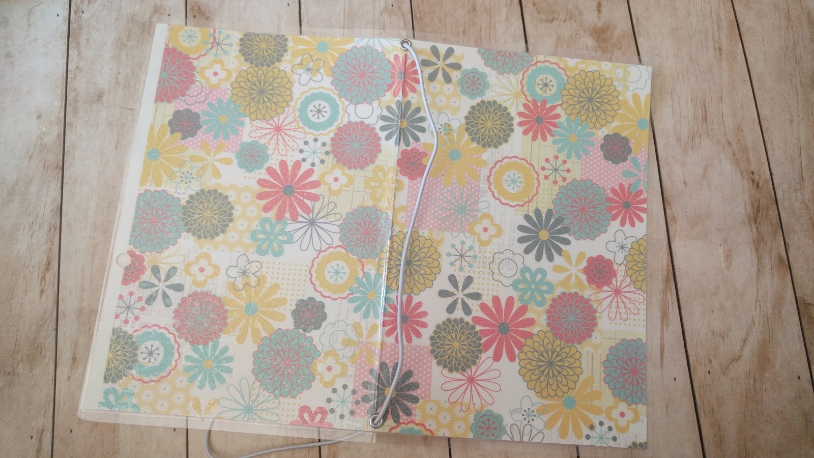 מדביקים אותם. זוכרת? לא מדביקים הכל, רק בקצה התחתון. משחילים את הדף מתחת לגומי, מוסיפים את דפי היומן השבועי (הפרינטבלס החינמי).