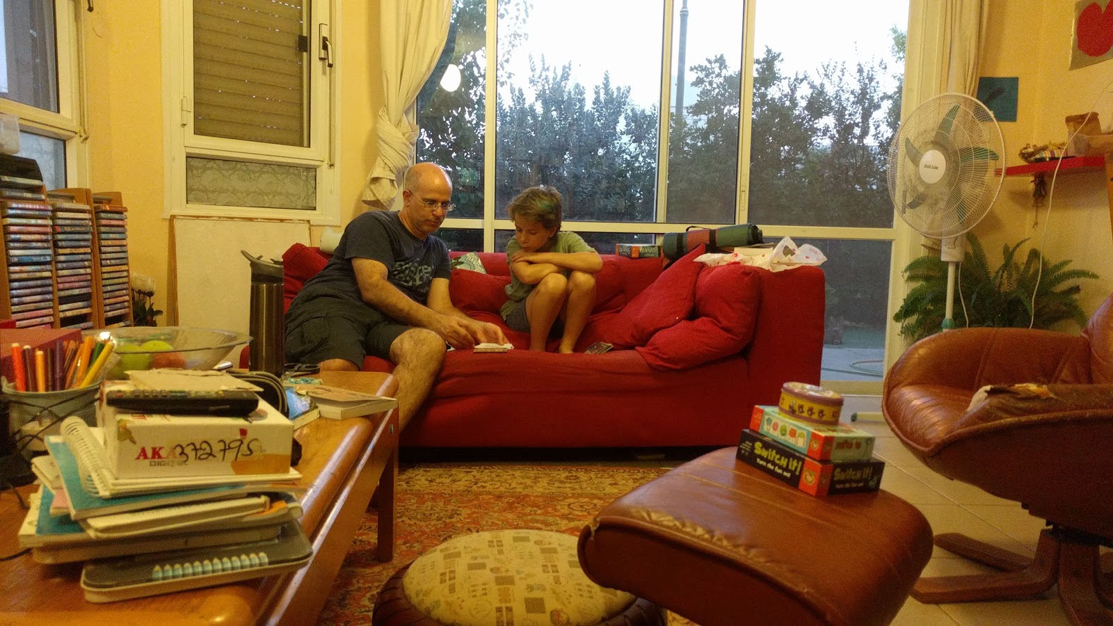 ולא היו צריכים את עזרתי (הלכתי לקפל כביסה). כמו במשחק הקודם, היו בינהם כמה ויכוחים, מי אמר ראשון, הוחלטו בינהם על תוספת של חוק, אם אומרים ביחד, הקלף חוזר לקופה.