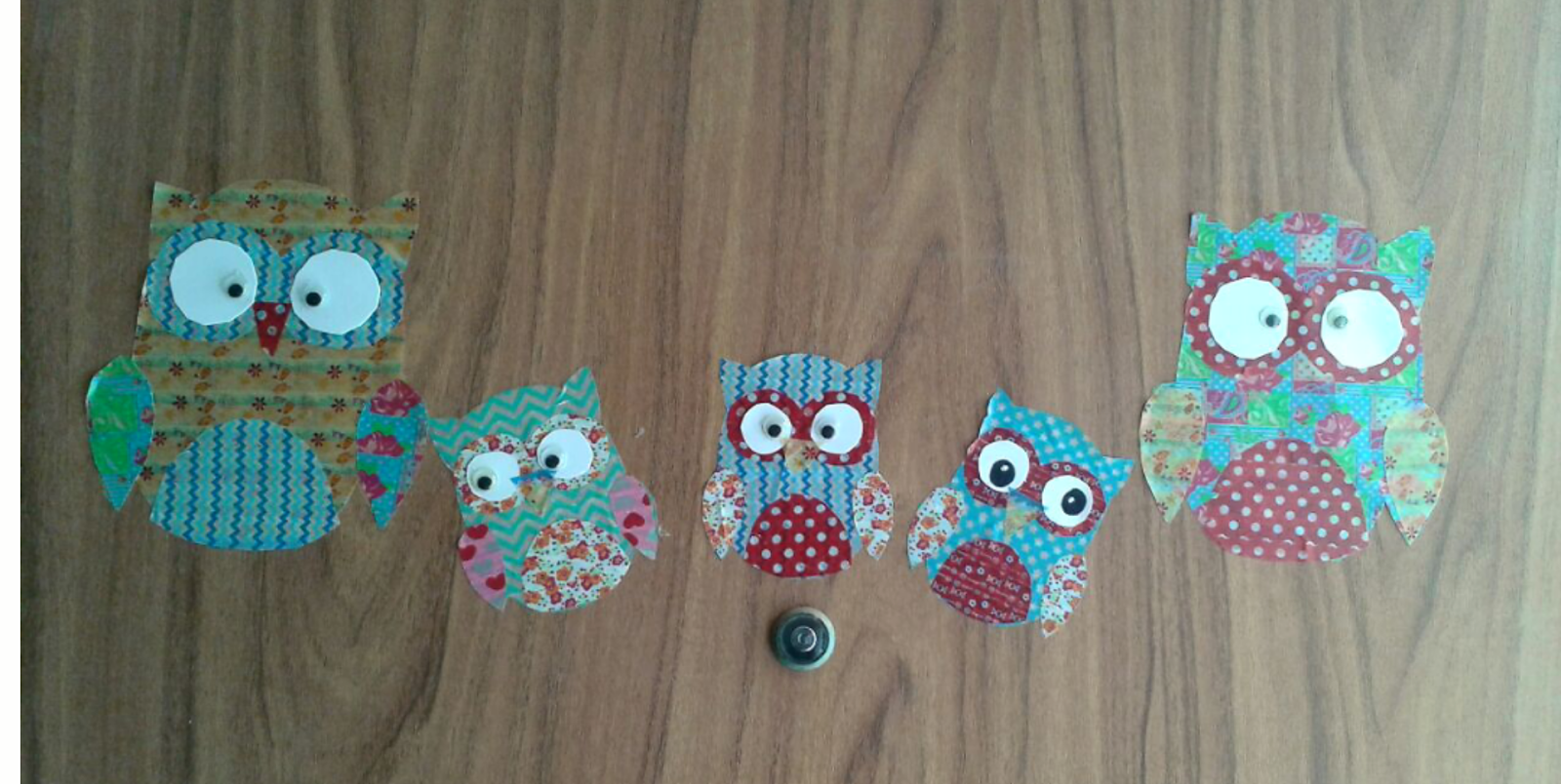 התמונה לקוחה מפה – ינשוף אני גוזרת עיגול קטן יותר מקרטון, מסביב לעיגול אני תופרת או עם חוט ומחט, ומקווצת מסביב לקרטון את החלק הזה אני מדביקה לינשוף למטה.