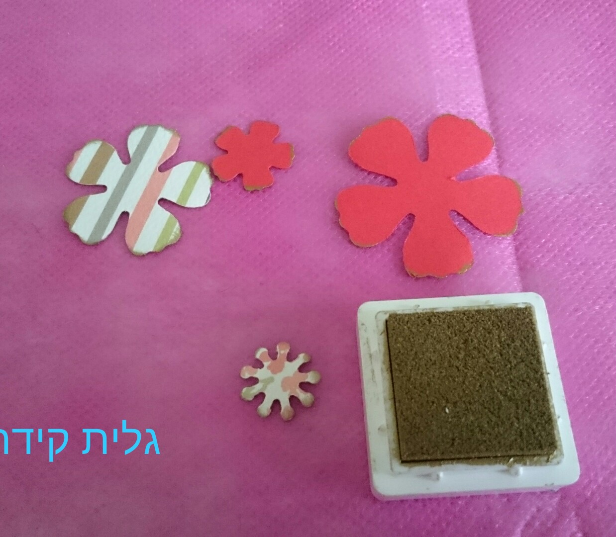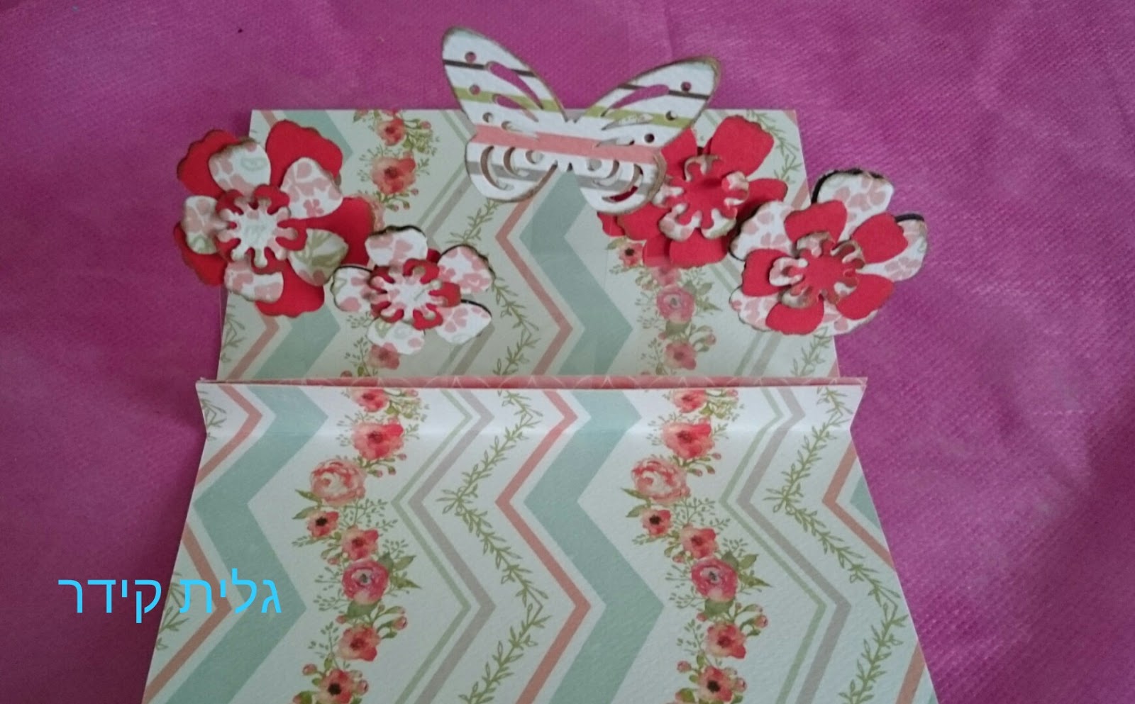לקישוט בצד החיצוני של הכרטיס השתמשתי בפאנץ דגל להכין את התגית