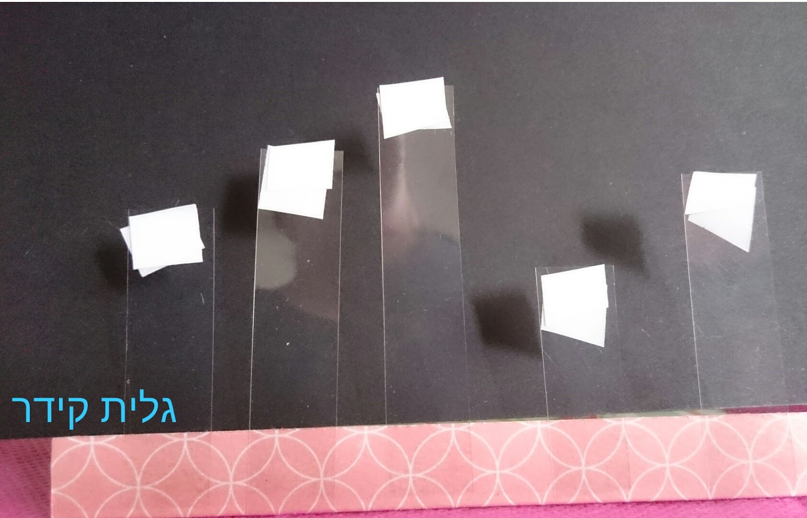 לחתיכות השקף האלה, הדבקתי בקצה שלהם דבק דו צדדי.