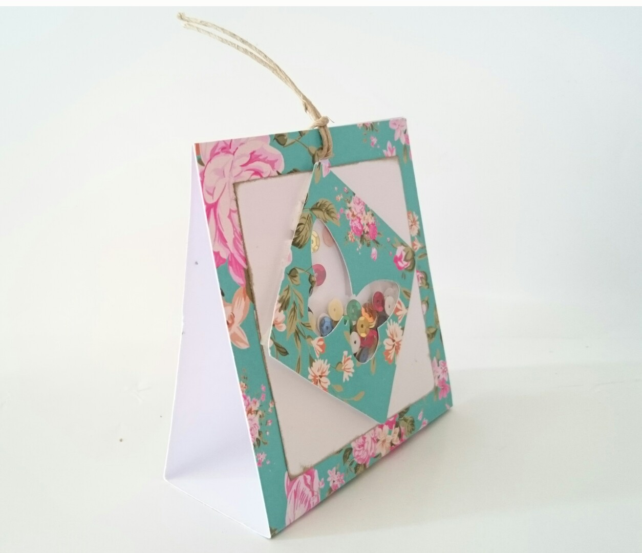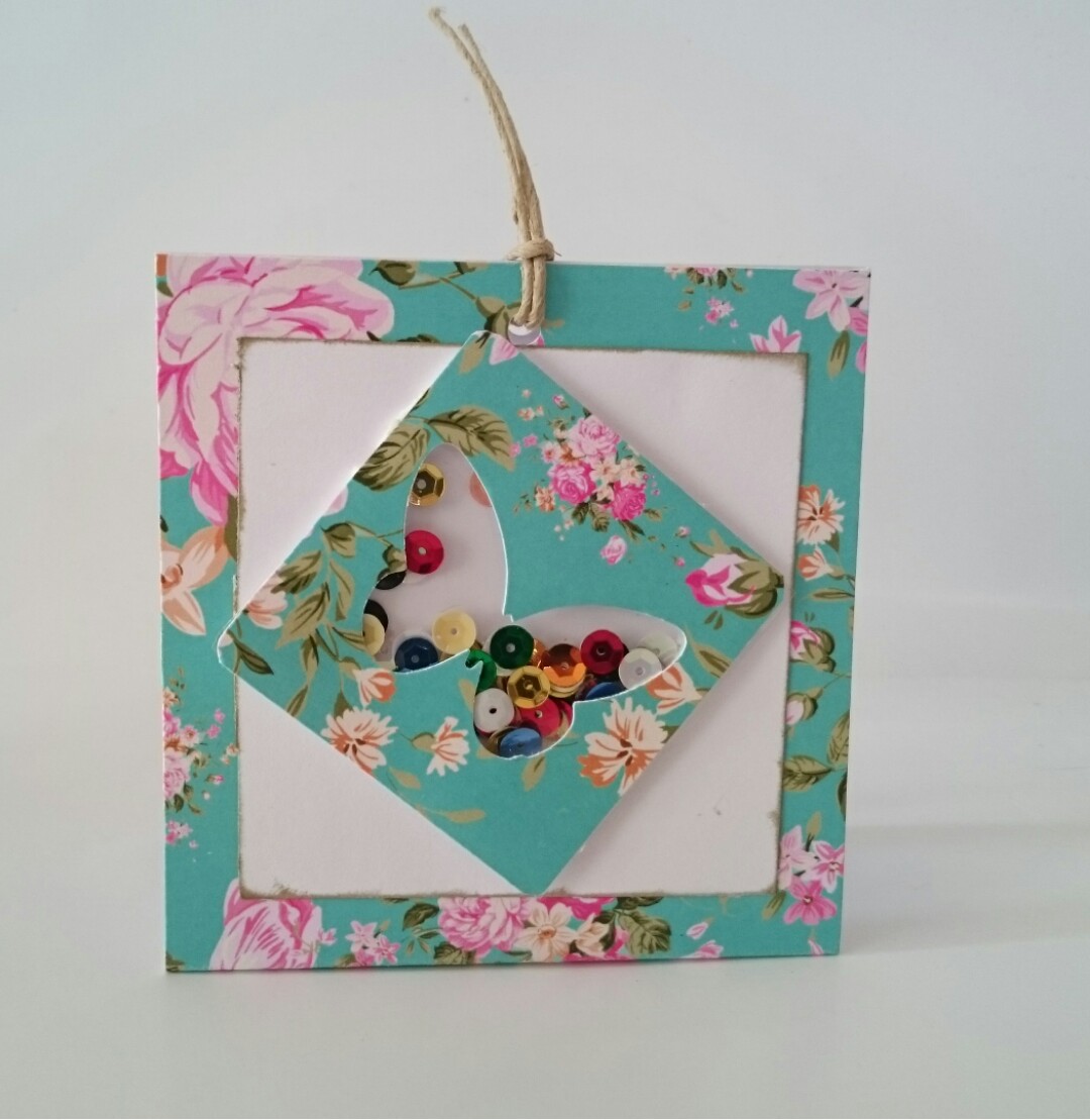 הכנתי כרטיס שייקר למארחים, עם פרפר שייקר, שאליו, אני אוסיף, שקית, עם שוקולד הום מייד.