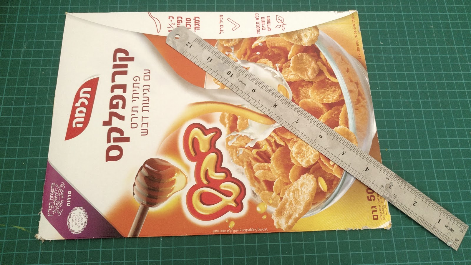 כל פרוייקט טוב מתחיל בשאריות. את קופסת הקורנפלקס, חותכים, כך שיתקבל צד של הקופסא.