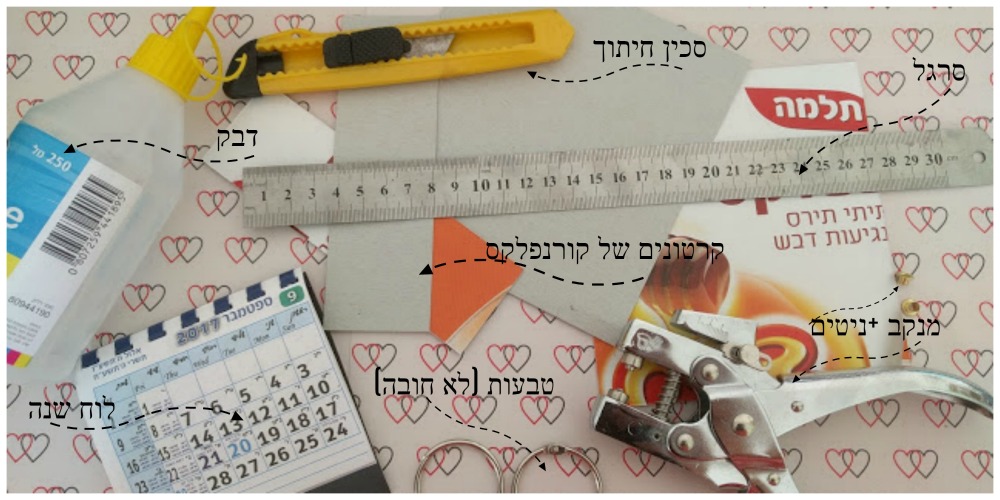 - מחורר + ניטים (לא חובה להשתמש בניטים, אפשרי רק לחורר)