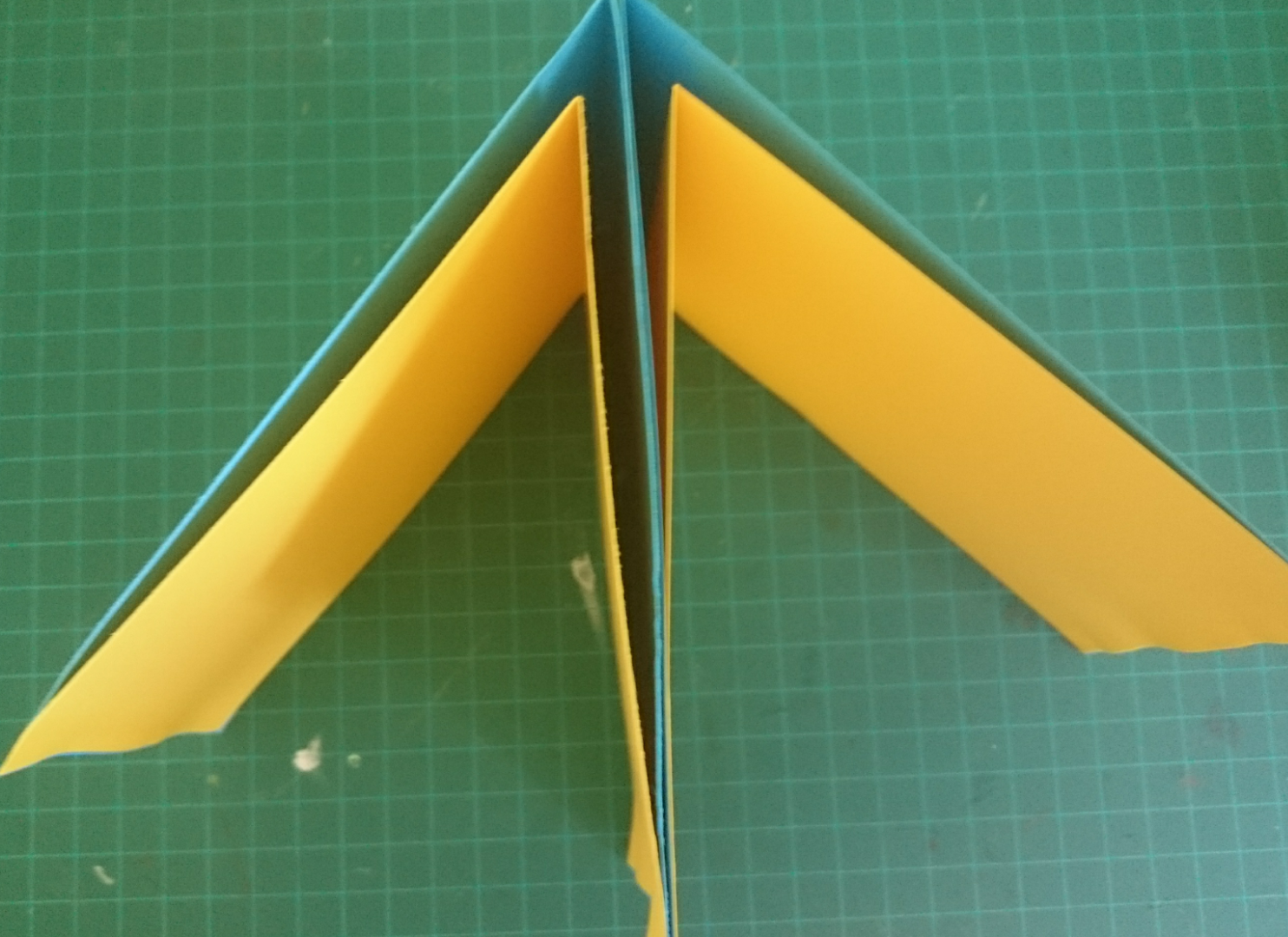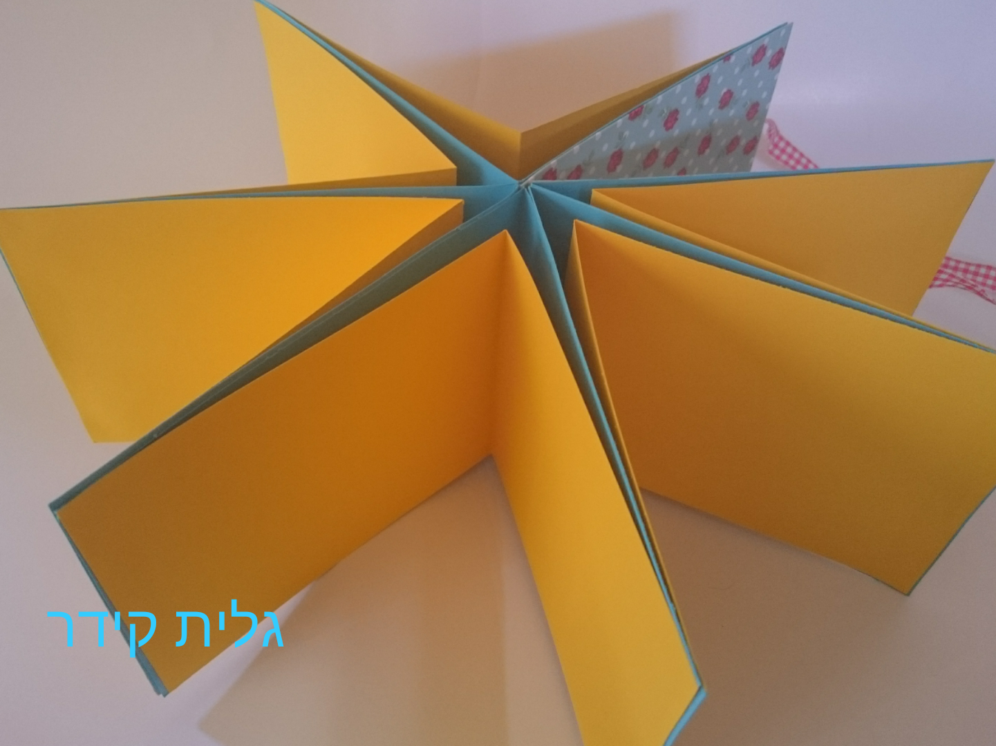 - 6 ניירות בריסטול בצבע שני (צהוב אצלי) – בגודל 26X10 ס"מ – חרוץ באמצע ומקופל