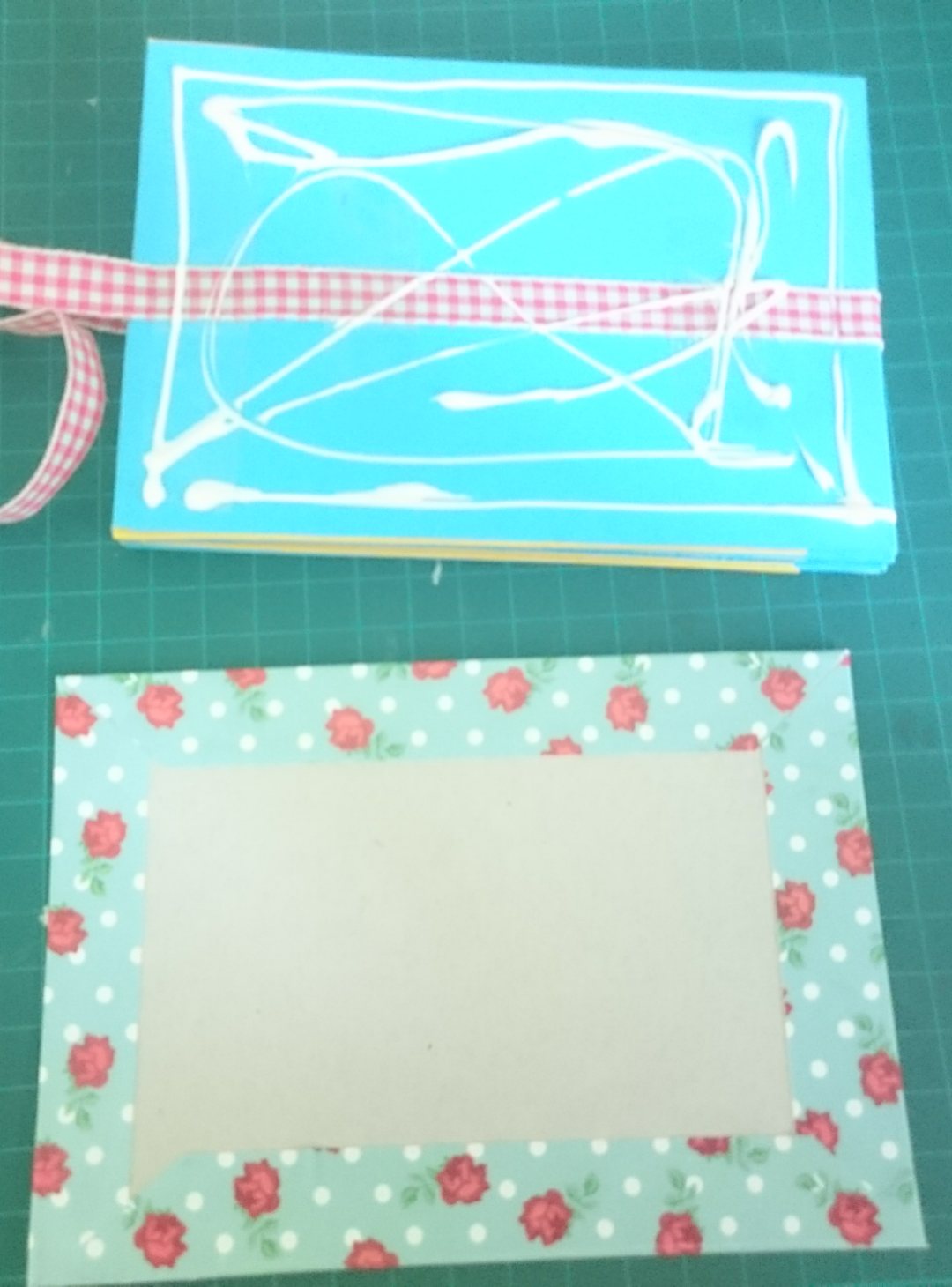 - שתי חתיכות של קרטון עבה לכריכה (אני השתמשתי בקופסא של קורנפלקס) – בגודל 10X15 ס"מ