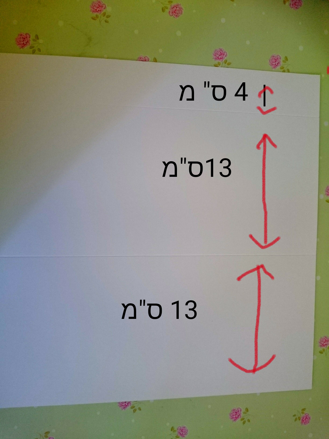 כך שאני מקבלת 3 חלקים של הדף, 4 ס"מ 13 ס"מ ועוד 13 ס"מ