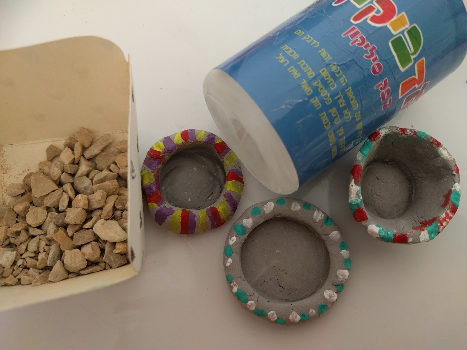 - כלים שעליהם אוכל לייצב את העציצונים מהדאס חתכתי חתיכה קטנה ( את השאר כדאי לסגור היטב שלא התיבש)