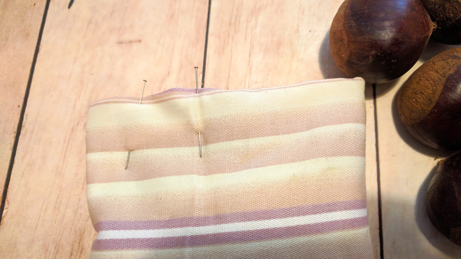 מחברים את חתיכות הבד, בעזרת סיכות, כדי של יזוזו, צד יפה לצד יפה.
